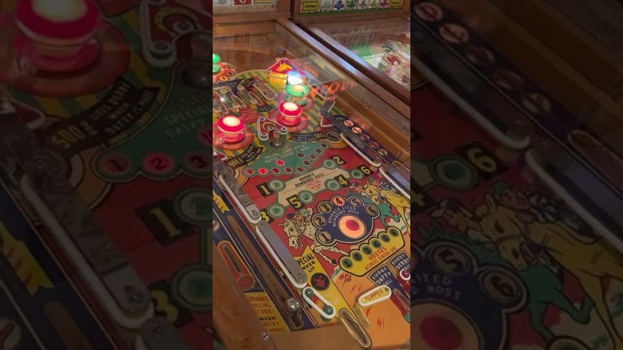 The "Daffy Derby" pinball machine, released by Williams Manufacturing Company in June 1954, is a single-player electro-mechanical game designed by Harry Williams, with artwork by George Molentin.