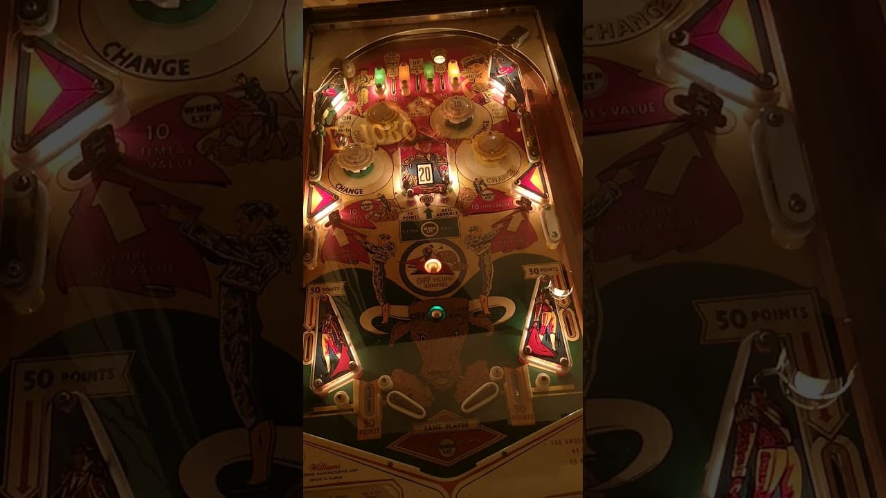The "El Toro" pinball machine, released by Williams Electronic Manufacturing Corp. in August 1963, is a two-player electro-mechanical game designed by Steve Kordek.