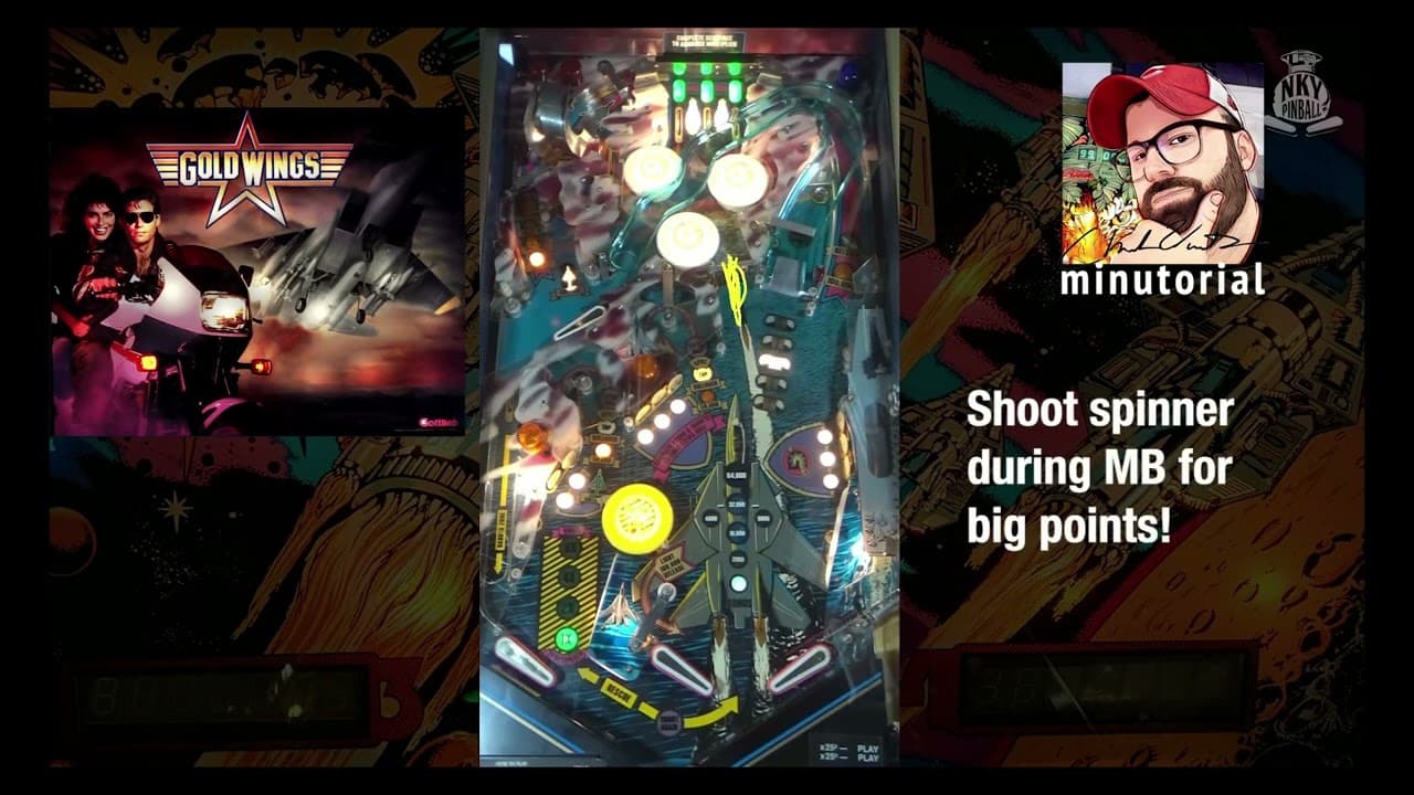 "Gold Wings" is a 1986 pinball machine by Gottlieb with an aviation theme, featuring four flippers and one ramp. Designed by John Trudeau, the game is known for its unique sound and music effects, including a siren, enhancing the experience of flying a jet. It uses a solid-state Gottlieb System 80B platform and allows for two-ball multiball gameplay.