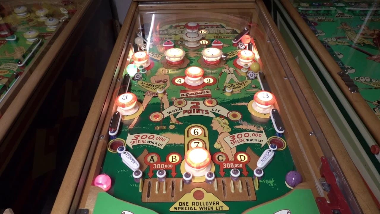 The "Green Pastures" pinball machine, released by D. Gottlieb & Co. in January 1954, is a single-player, electro-mechanical game designed by Wayne Neyens, with artwork by Roy Parker.