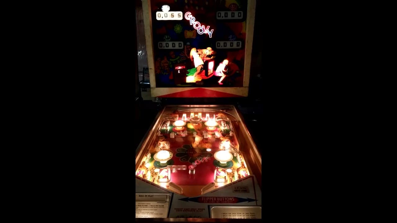The Groovy and Crescendo pinball machines, both released by D. Gottlieb & Co. in 1970, are nearly identical in design but differ in player capacity—Groovy supports four players, while Crescendo is a two-player version. Designed by Ed Krynski with artwork by Art Stenholm, both machines feature vibrant artwork reflecting the era's psychedelic aesthetic. Notably, these games were the first from Gottlieb to feature modern-style drop targets, a significant innovation at the time.