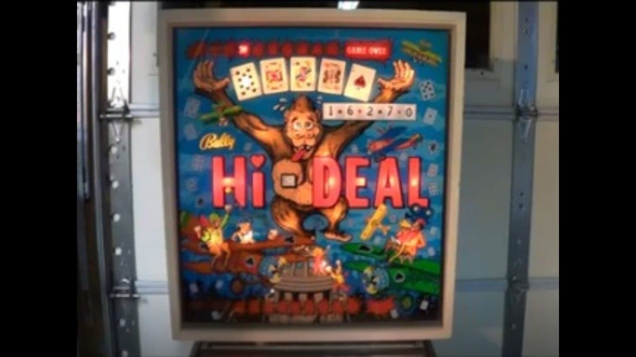 The Hi-Deal pinball machine, released by Bally Manufacturing in October 1975, is a single-player electro-mechanical (EM) game designed by Jim Patla with artwork by Dick White. It has a card and casino theme, featuring two flippers, three pop bumpers, and a spinner.