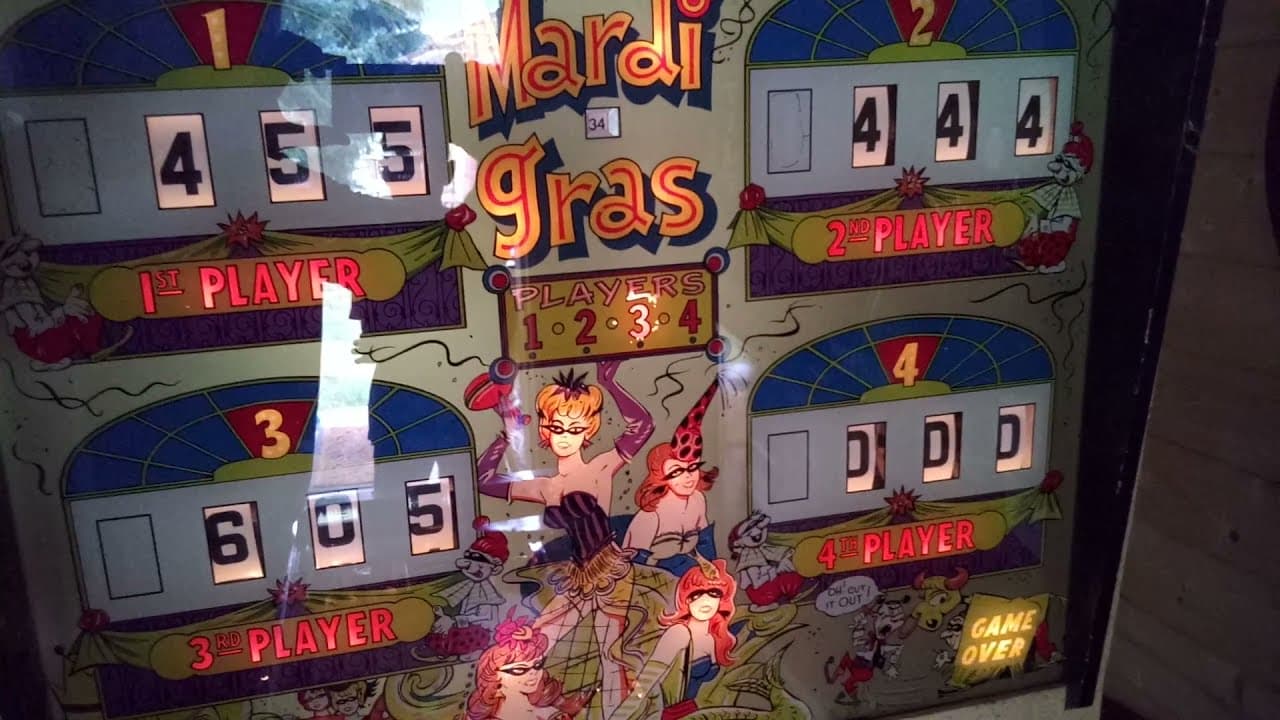 The "Mardi Gras" pinball machine, released by Williams Electronic Mfg. Co. in October 1962, is a four-player electro-mechanical game designed by Steve Kordek.