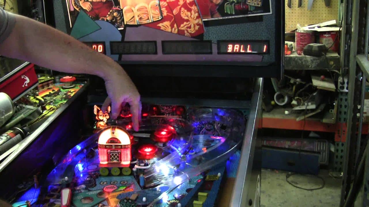 "Party Animal" is a 1987 pinball machine by Bally with a vibrant party theme. Designed by Dennis Nordman, it features three flippers, two ramps, and a three-ball multiball mode. The game is known for its lively sound effects, including music by Michael Bartlow, and its playful artwork by Pat McMahon.