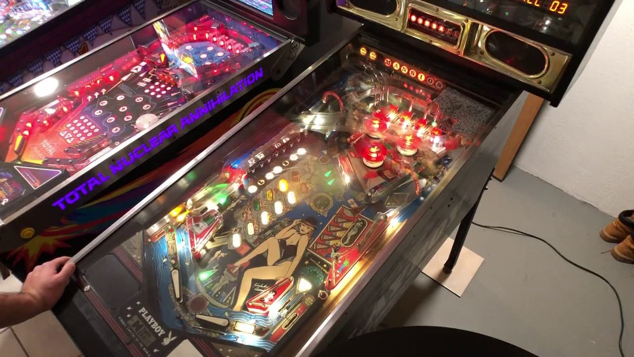 The "Playboy 35th Anniversary" pinball machine, released by Data East in May 1989, commemorates the 35th anniversary of Playboy magazine with a theme centered around a poolside party at Hugh Hefner's Playboy mansion. Designed by Joe Kaminkow and Ed Cebula with artwork by Kevin O'Connor, this solid-state machine features two flippers, three pop bumpers, and two ramps, alongside a 3-ball multiball mode.