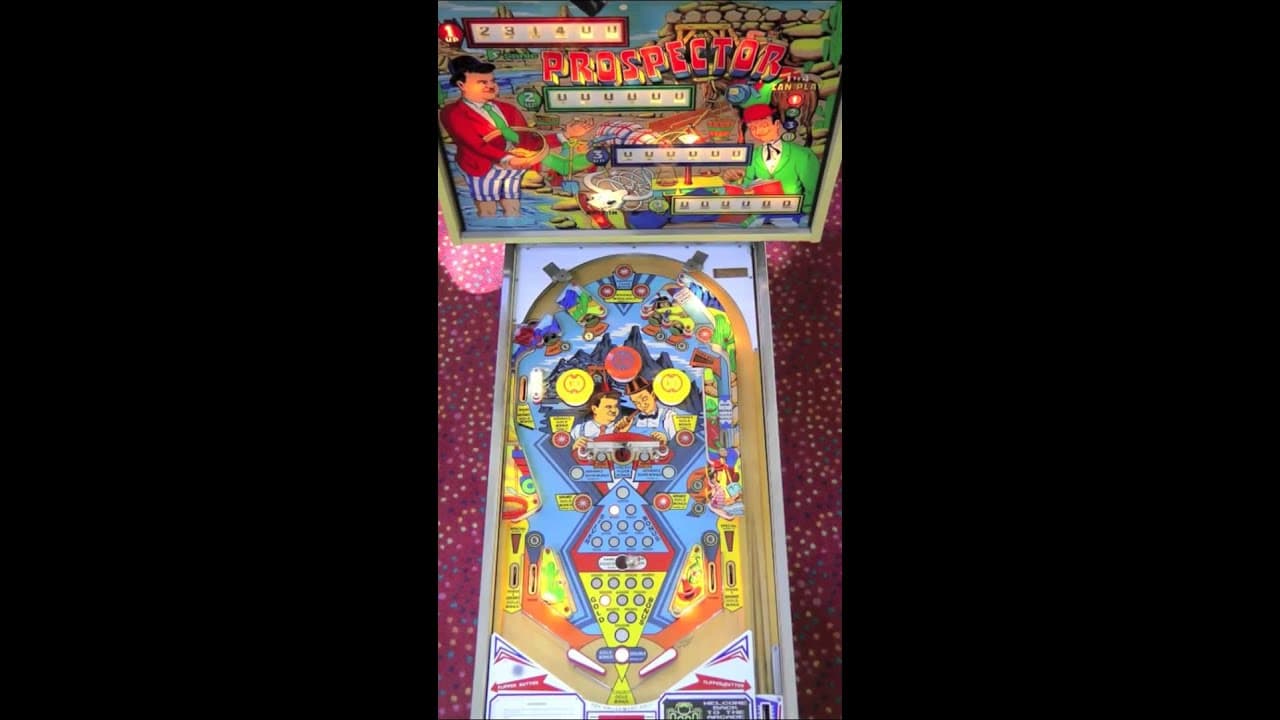 The Prospector pinball machine, released in 1977 by Segasa under its Sonic brand, is an electro-mechanical machine featuring a western theme inspired by prospecting for gold. The game’s backglass notably features a comedic depiction of prospectors, which some sources suggest is based on the Laurel and Hardy film Way Out West.