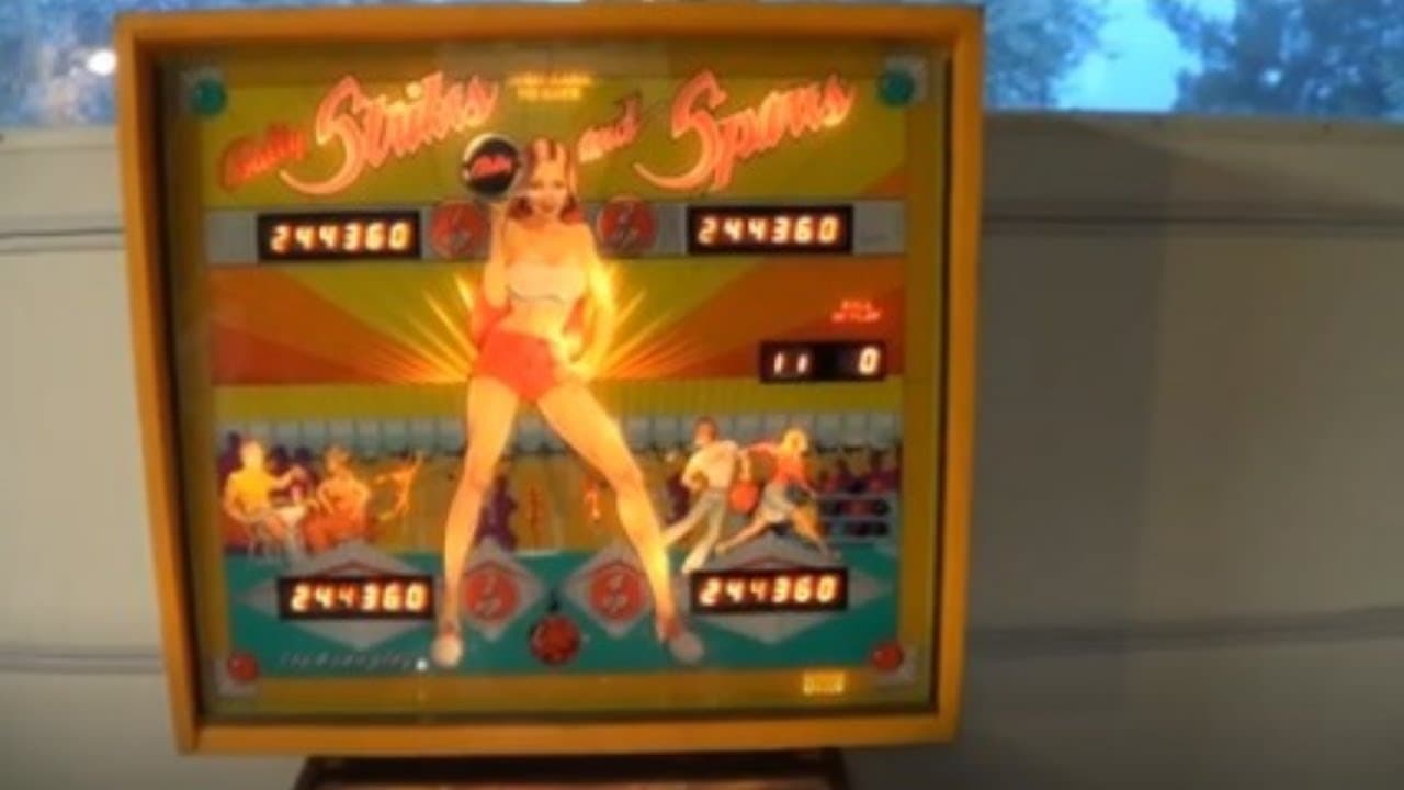 The "Strikes and Spares" pinball machine, released by Bally in 1978, is a bowling-themed game designed by Gary Gayton with artwork by Kevin O'Connor. It features two flippers, three pop bumpers, a kick-out hole, a rollunder spinner, and ten star rollover buttons arranged in the shape of a bowling pin rack. This game was one of Bally's first solid-state machines, transitioning from electro-mechanical to electronic scoring.