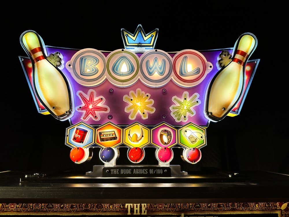 The Big Lebowski pinball machine, developed by Dutch Pinball in 2015, is a tribute to the cult classic film "The Big Lebowski." It features a highly immersive experience with over 200 quotes and clips from the movie. The machine boasts a unique multi-level playfield with three flippers, five-ball multiball, and interactive elements such as a replica Brunswick bowling alley and "bash toys" like the rug and Dude’s car.