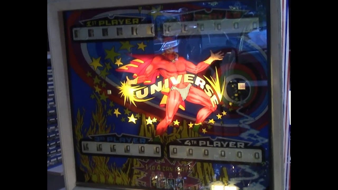 Universe, produced by the Italian manufacturer Zaccaria in November 1977, is an electro-mechanical pinball machine with a space exploration theme. The game features two flippers, three pop bumpers, two slingshots, and a variety of standup targets.